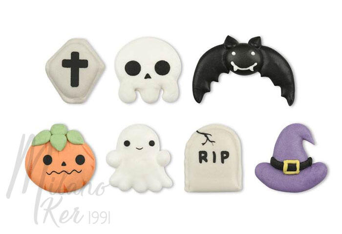 • Mennyiség: 70 darab (7 féle cukorfigura [koporsó, szellem, denevér, tök, sírkő, boszorkánysapka] vegyesen)
