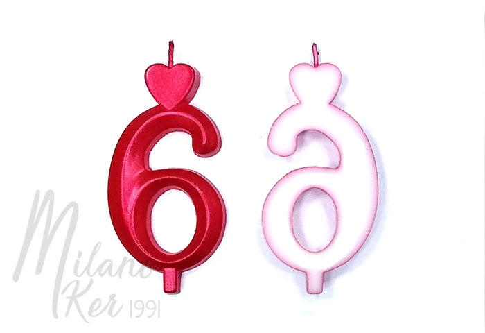 Nagy piros 6-os számgyertya, 10 db - Valentin nap