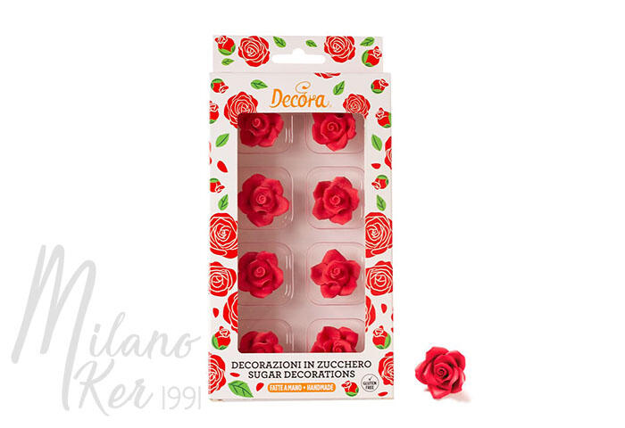 Piros cukorrózsák 2cm (8 darab) - Cukor virágok