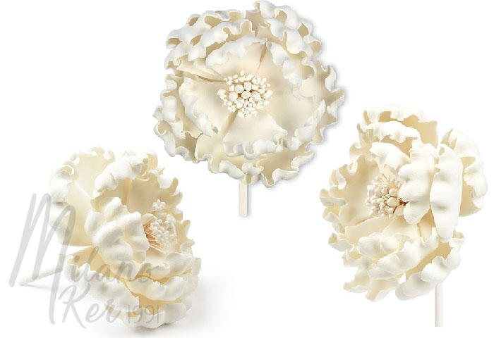 Fehér bazsarózsa tragantvirág, 9 db - Tragant virágok